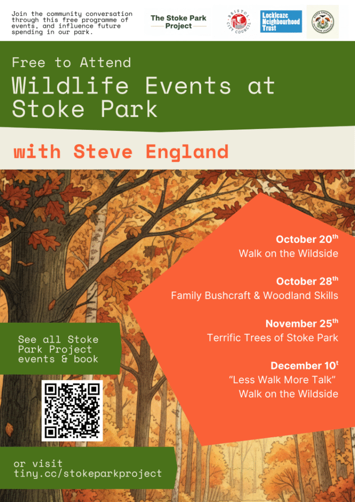 Lockleaze Neighbourhood Trust is delighted to be partnering with Steve England Outdoor Learning and Bristol City Council on an exciting programme of free events at Stoke Park. These events offer wonderful opportunities for families to explore nature, learn about local heritage, and help shape the future of our local park.