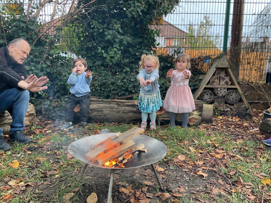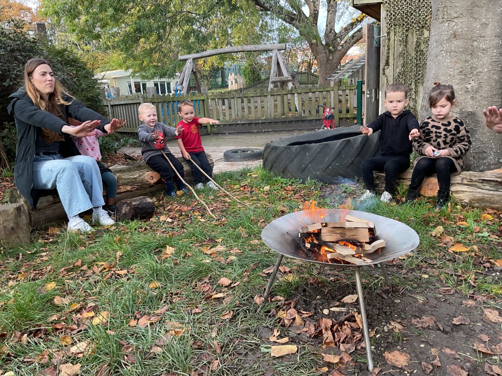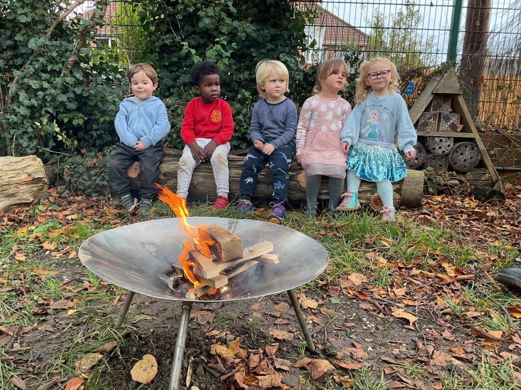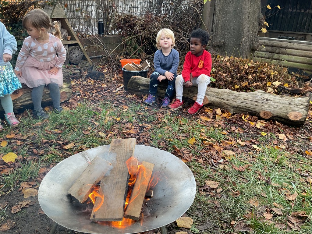 This week, Beech and Willow Rooms have been celebrating Bonfire Night with a special fire experience in the garden. The children gathered around the fire with adults, learning about fire safety whilst experiencing the sensations of heat, flickering flames, and warmth. This memorable seasonal activity helped children understand traditional autumn festivities.