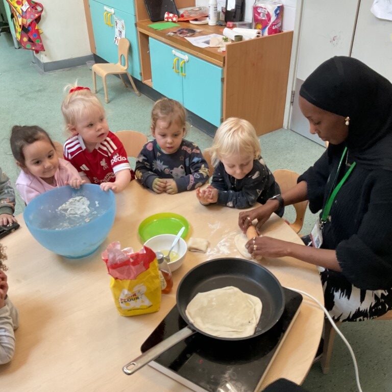 Little Acorns has been busy making chapati and enjoying tasting it as we learn about and prepare for the month of Ramadan. The children have been exploring different cultural traditions, developing their understanding of diverse celebrations and customs whilst learning about the foods that are important during this special time.